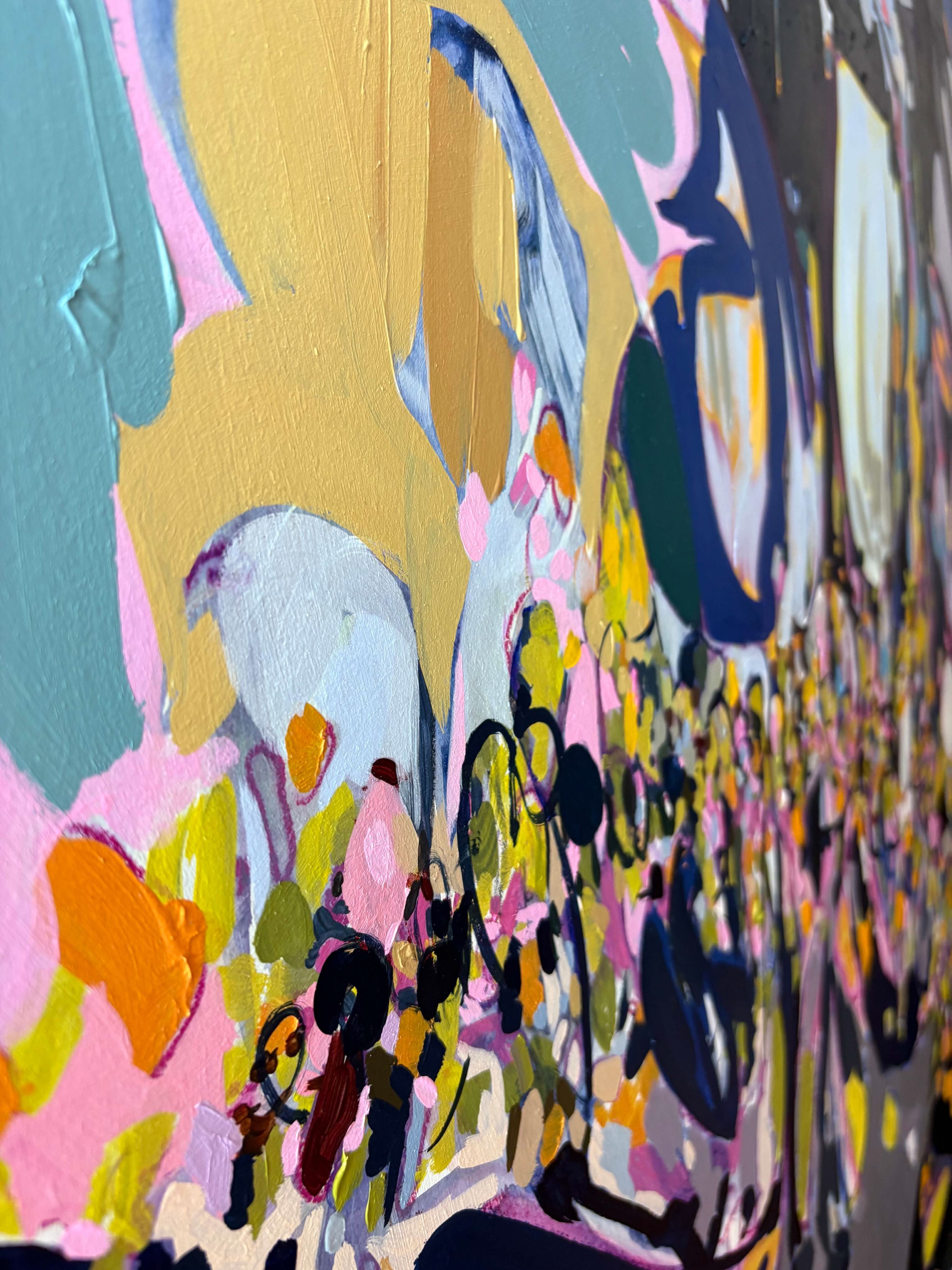 Recent highlights include exhibiting at Turner Contemporary, the acquisition of four works by The Artist Residence for their permanent collection, and commissions from Faithless and Pikes Hotel in Ibiza. This year, she participated in Brighton’s Open House Festival and exhibited in London in a show curated by renowned art critic and writer Anthony Fawcett. Following her 2023 graduation, she was nominated for the CVAN South East Platform Graduate Award and received the University for the Creative Arts Graduate Award, which culminated in a month-long residency and her debut solo show.