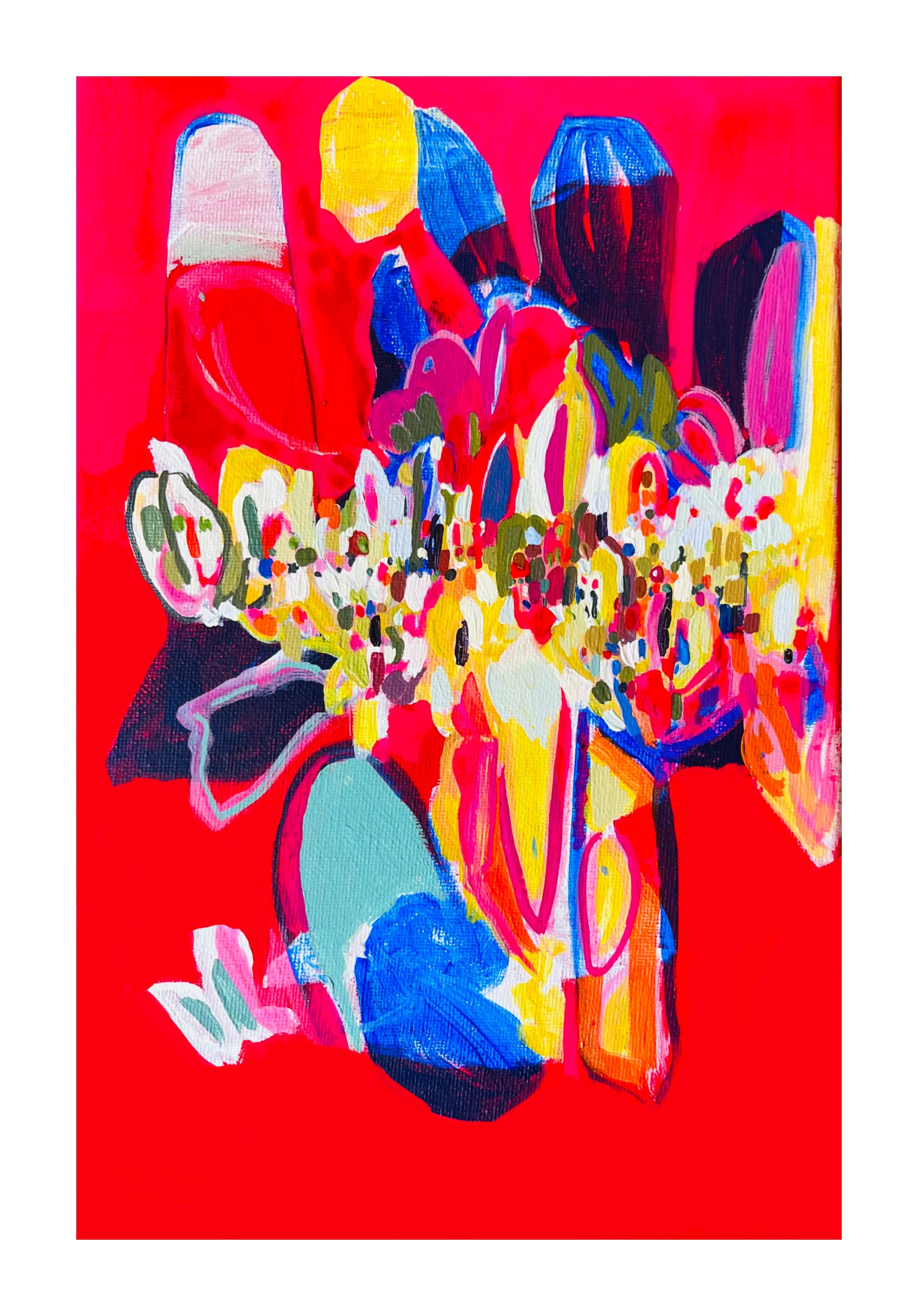 Recent highlights include exhibiting at Turner Contemporary, the acquisition of four works by The Artist Residence for their permanent collection, and commissions from Faithless and Pikes Hotel in Ibiza. This year, she participated in Brighton’s Open House Festival and exhibited in London in a show curated by renowned art critic and writer Anthony Fawcett. Following her 2023 graduation, she was nominated for the CVAN South East Platform Graduate Award and received the University for the Creative Arts Graduate Award, which culminated in a month-long residency and her debut solo show.