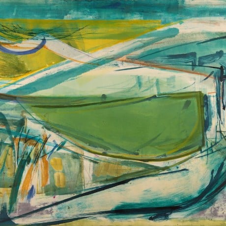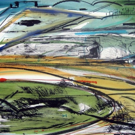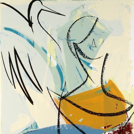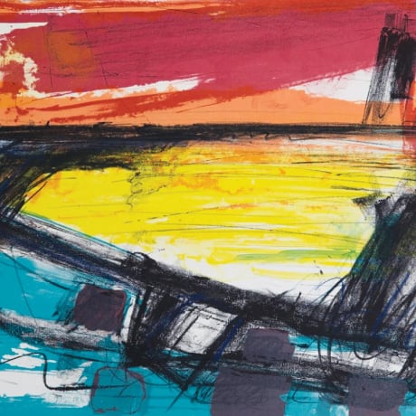 To the Lighthouse, Ile de Ré showcases Farley’s fresh and dynamic take on nature, landscape and the spirit of place. Romantic and windswept, Farley’s sweeping lines and washes of colour draw the viewer into this coastal scene of lighthouse, boats, ominous sky and swelling water. She combines a tremendous sense of atmosphere with a modernity and minimalism that reflects her personal connection with the landscape. The title of this piece reminds us of the novel of the same name by Virginia Woolf, the flow of line and colour is reminiscent of Woolf's stream-of-consciousness style of writing.
