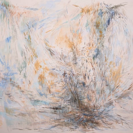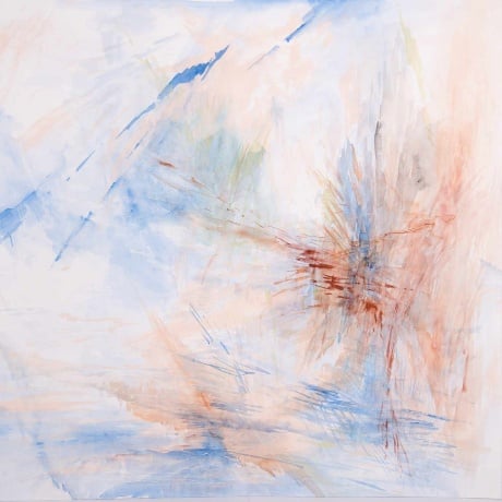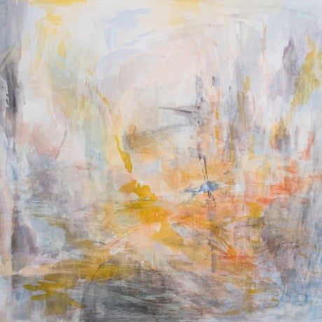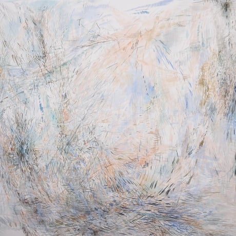 Cattrell’s work draws deep inspiration from the natural landscape, particularly the convergence of sea, sky, and land. She seamlessly blends drawing, tone, and color to create breathtaking abstract landscapes, interpreted through delicate brushstrokes and a dreamy color palette. Printmaking is integral to her creative process, using the transparency of silkscreen to build images, much like her paintings, which are layered with thin washes of paint resembling watercolors in texture.