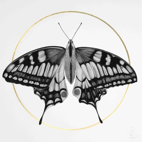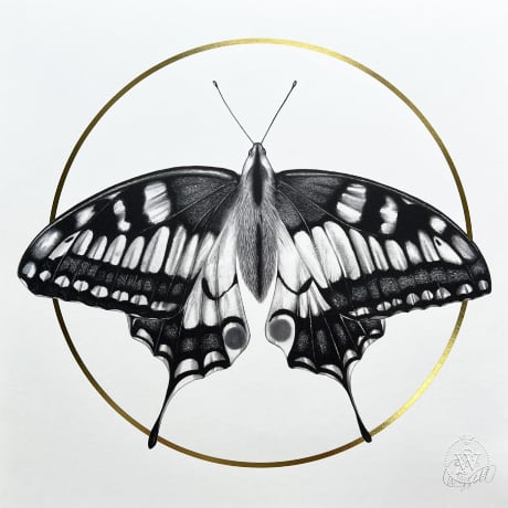 Employing incredible skill and fine art techniques, Waggett depicts her photorealistic subjects in stripped-back monochrome, embellished with shimmering precious metals. Her work represents the inner struggle to balance materialism and meaning, with each piece a social commentary designed to challenge the viewer to confront the impact of mining the world for precious natural resources.