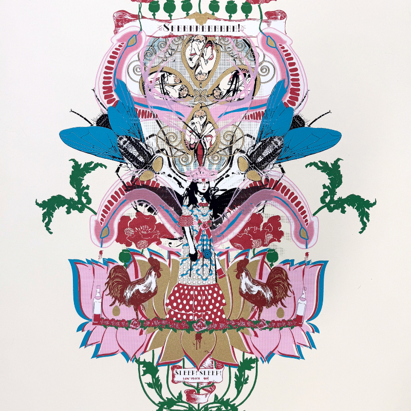 Her practice thrives on contradiction: vivid yet hallucinatory, empathetic yet dark, rooted in tradition yet breaking it apart. Each piece invites complicity from the viewer—an open-ended question rather than a closed statement.