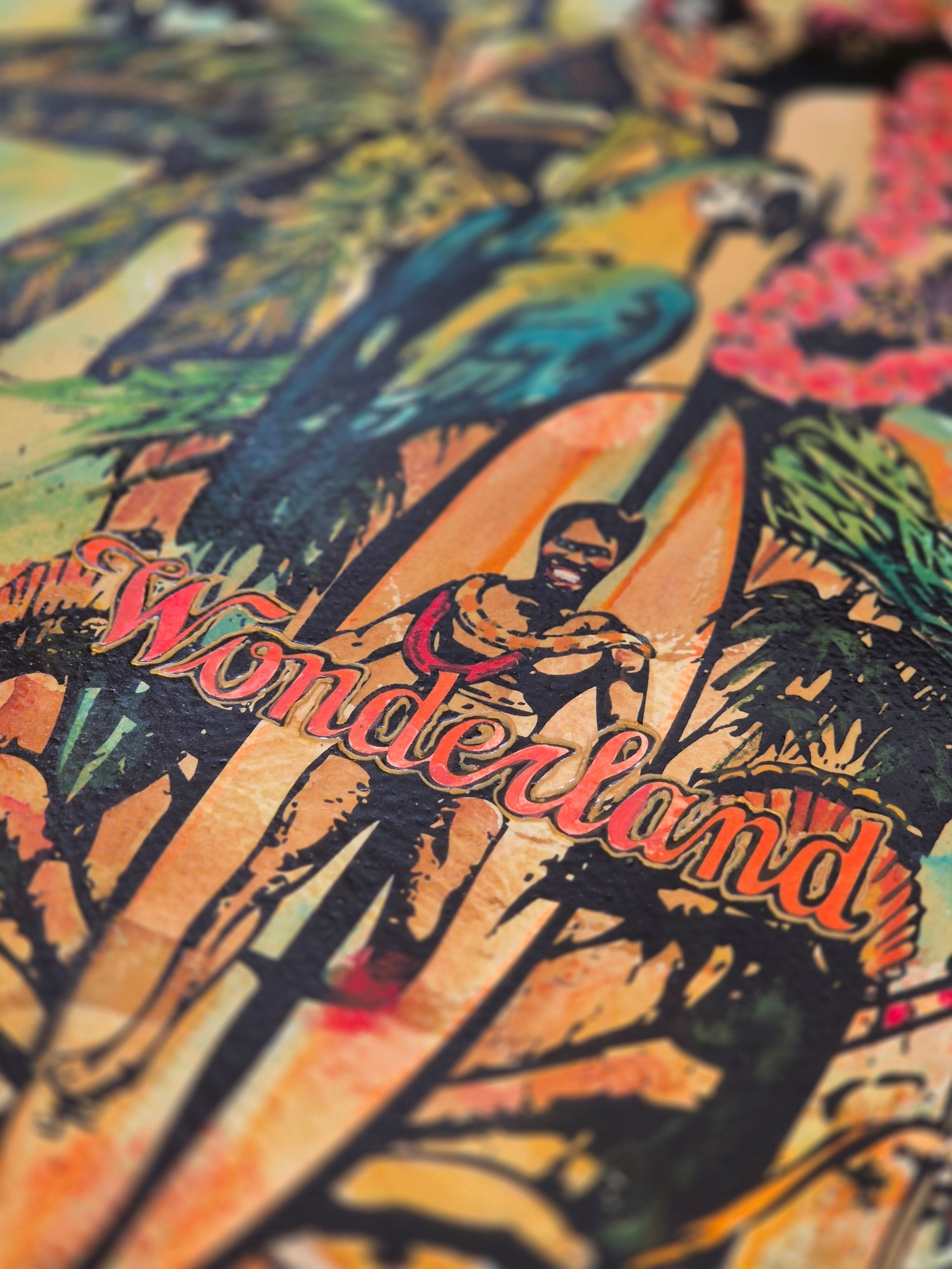 As with much of her work, Wonderland balances the mythic with the modern, inviting viewers into a dreamlike landscape that reveals deeper truths on closer inspection. Brimming with intricate detail and tactile finishes, this is a standout original by an artist known for her ability to blend dark wit, layered symbolism, and fearless storytelling.