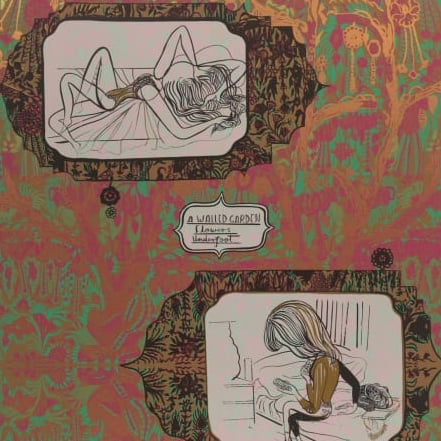 A Walled Garden (Red) is a signed, limited edition silkscreen print with metallic ink by contemporary artist Emma Talbot.