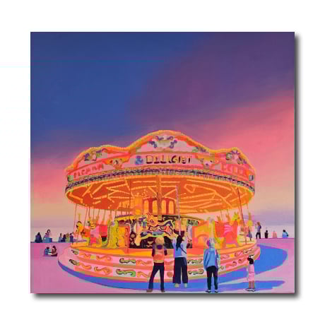 Carousel is created using oil and acrylic on canvas. It is comes signed by the artist.