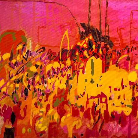 This painting encapsulates the constant unfurling of time. The flooding of visual information feels chaotic. And, it is. It’s an explosion of places I’ve been, people I’ve met, feelings I’ve felt and experiences I’ve lived.