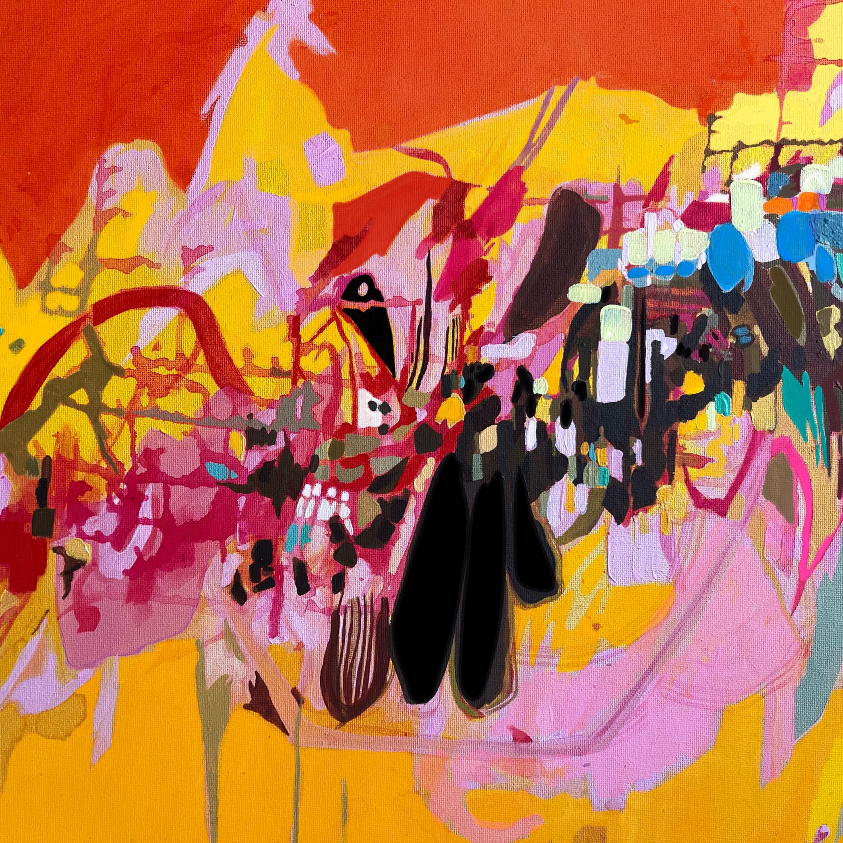 In an attempt to capture the rhythm of flux and the unfurling of time and space, the canvas journeys into the unknown. Every action is evolution, adaptation, and absorption; layers of change amalgamate upon one surface in a kind of chemical fusion. Like a rhizome root, if you look closely, you will notice a labyrinth of interconnection – and with it, a story.