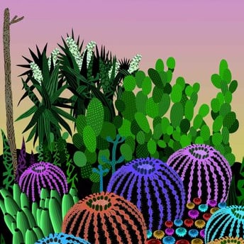 Known for his bright, Pop Art inspired landscapes, Benjamin Thomas Taylor blends the rural with the urban, the real with the fantastical, for a dreamy and escapist aesthetic.