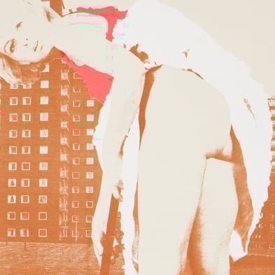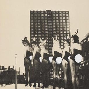 Salford Sizzle is from Sarah Hardacre's collection exploring the changing roles of women within working class society. By juxtaposing images of women sourced from second-hand "gentlemen's magazines' against the industrial backdrop of her hometown of Salford, the artist reflects on masculinity and femininity and notions of public and private space.