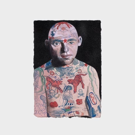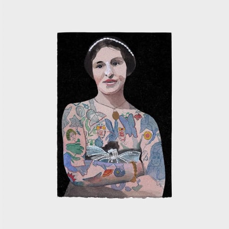 Blake's Tattooed People Collection features intricate watercolour portraits of heavily-inked men and women, and revisits one of the artist's favourite areas of interest - the circus, fairground and the side-show attraction. Percy has an array of Americana-inspired ink, including a large Native American chest piece.