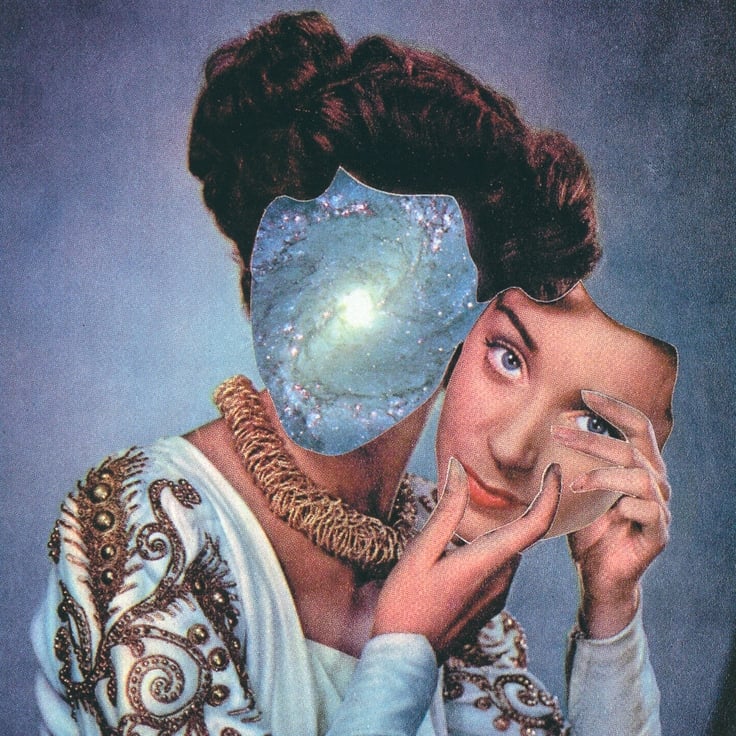 In Mind Blown, a woman looks to the heavens, her third eye illuminated by the centre of the galaxy.