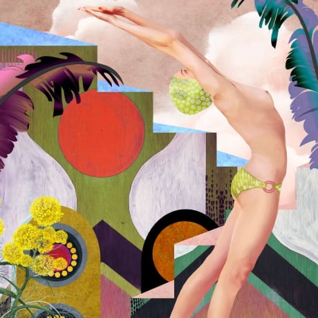 Influenced by her years spent in Zimbabwe and India, Arnett’s stylish and elegant aesthetic is a celebration of exotic combinations of colour and pattern. Now based in Brighton, she produces fantastical landscapes, intertwining the iconic Regency architecture of the seaside city with the tropical scenery of her formative years abroad.