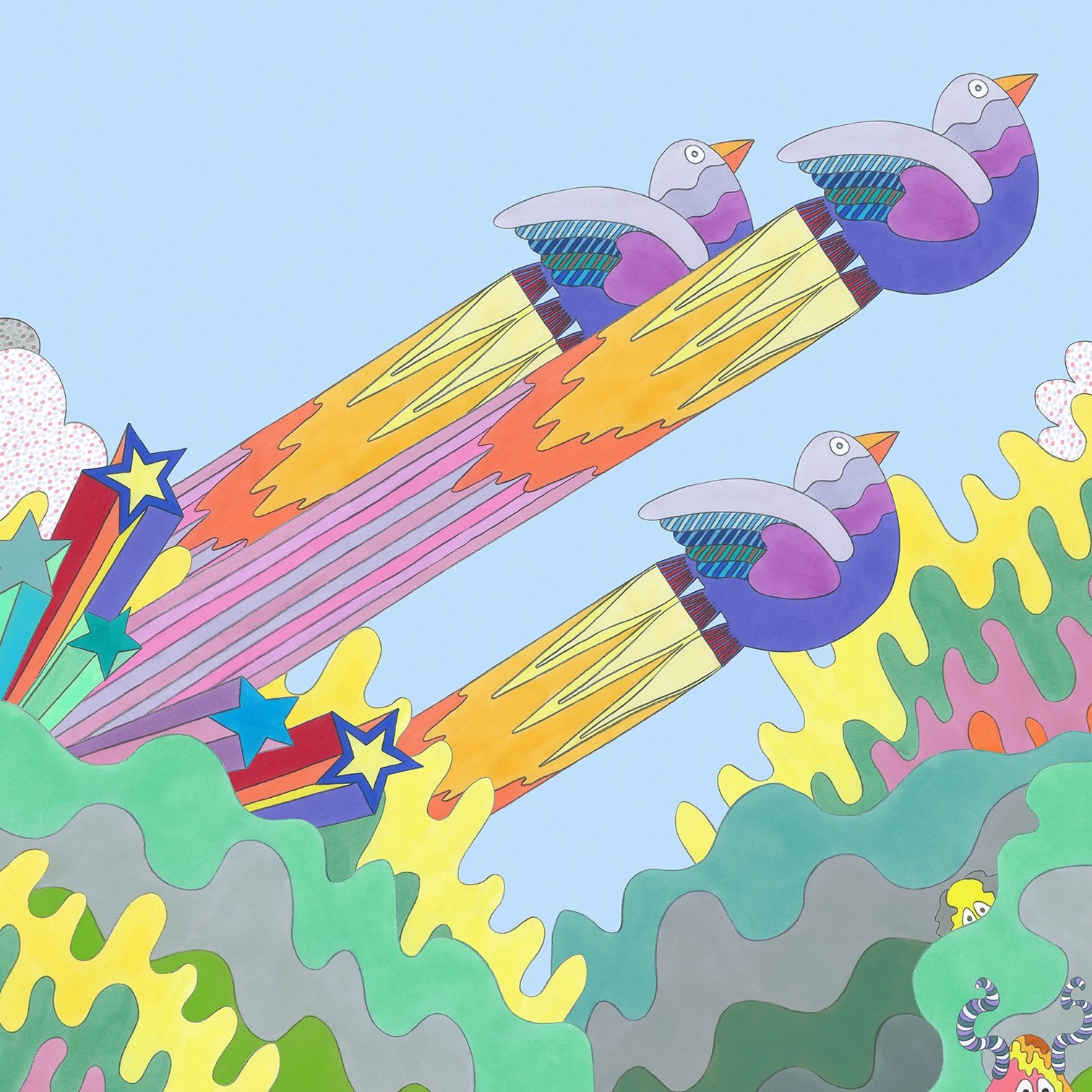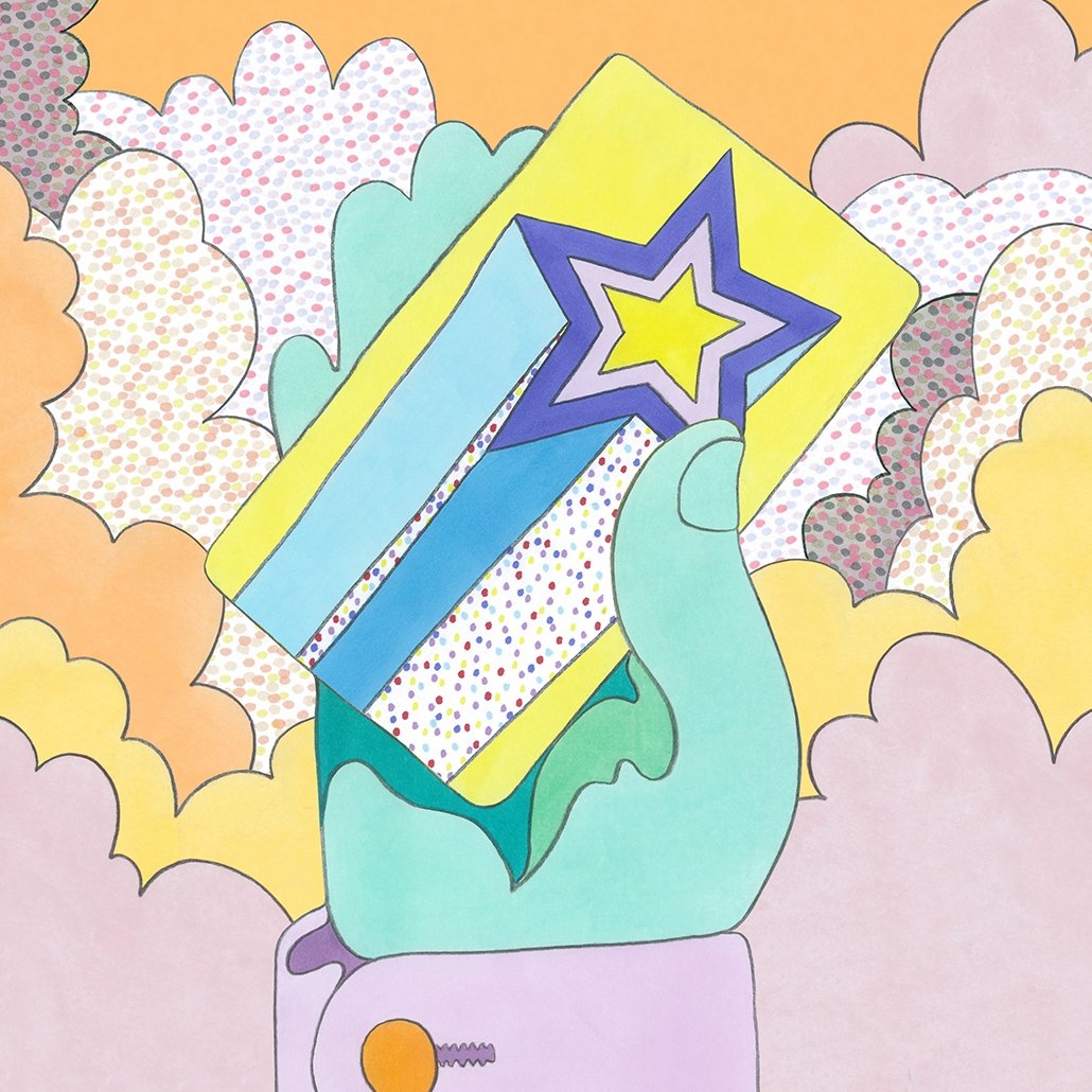 Distinctive Brighton-based based artist, Boogaloo Stu is known for his ‘exuberant style, balancing geniality with end-of-the-pier bawdiness and offbeat charm’. The artist creates and inhabits an irresistible world of his own, full of colour, optimism, and sparkling vintage lurex.