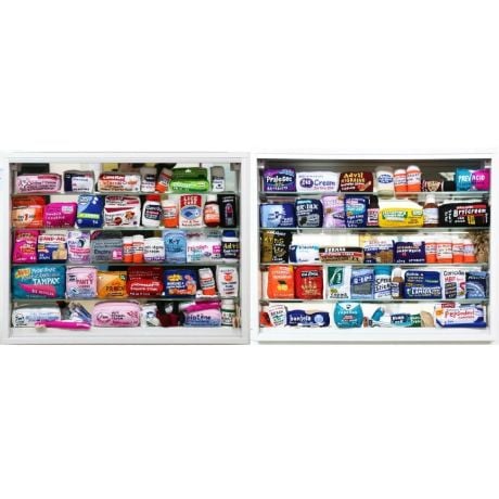 For this piece, Sparrow has recreated a convenience store shelf entirely from felt, offering a modern take on pop art portrayals of consumer goods. The shelves of the cabinet are packed with familiar household essentials, including Heinz ketchup and Sun-Maid raisins.